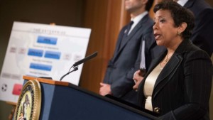 La nueva acusación en el caso de corrupción y sobornos en la FIFA presentada por la justicia estadounidense incluye a 16 reconocidos dirigentes del fútbol de Centro y Sudamérica. En la imagen, La fiscal general de Estados Unidos, Loretta Lynch. FotoAFP