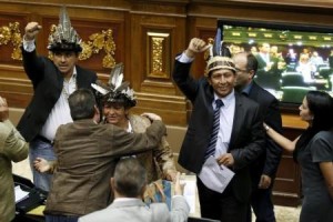 El presidente de la Asamblea Nacional, Henry Ramos Allup, anunció que los diputados de Amazonas solicitaron su desincorporación para defenderse judicialmente, ante la sentencia emitida por la Sala Electoral del Tribunal Supremo de Justicia, quien ordenó la separación de estos parlamentarios, o de lo contrario, declararía nulas las decisiones que tome el Parlamento, mientras sigan en sus curules. Julio Haron Ygarza, Nirma Guarulla y Romel Guzamana, quienes aparecen en la imagen, minutos después de ser juramentado el pasado 6 de enero, Foto Reuters/Marco Bello
