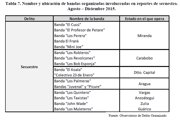 Los estados con mayor número de reportes de secuestro fueron: Miranda, con 20 casos; Distrito Capital, con 11 reportes y, finalmente, Aragua, con 10 reportes.