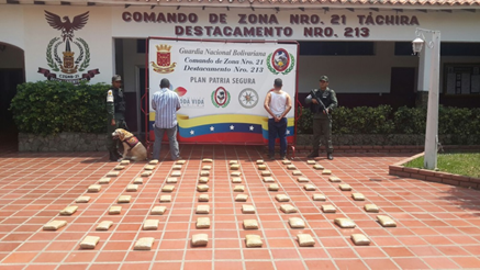 También informó “que en la parte posterior de los cojines del vehículo, se encontraron 70 panelas de forma rectangular de la presunta droga denominada marihuana, que arrojo un peso bruto de 38 kgs aproximadamente, por lo que fueron detenidos los dos ciudadanos y puestos a la orden de la Fiscalía N°29 del Ministerio Público, del Estado Táchira