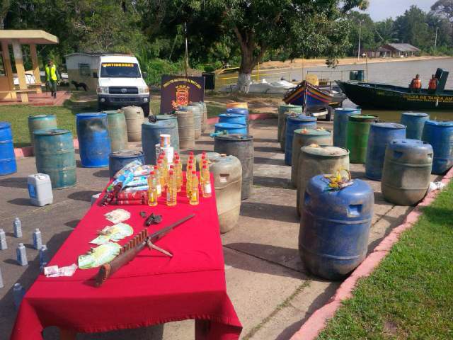 Cuatro mil 600 litros de gasolinas embasadas en 21 pipas con capacidad de 220 litros, armas de fuego, dinero en efectivo, así como también partes de motores de lancha y aceites , fueron incautados por la Guardia Nacional Bolivariana en Delta Amacuro.