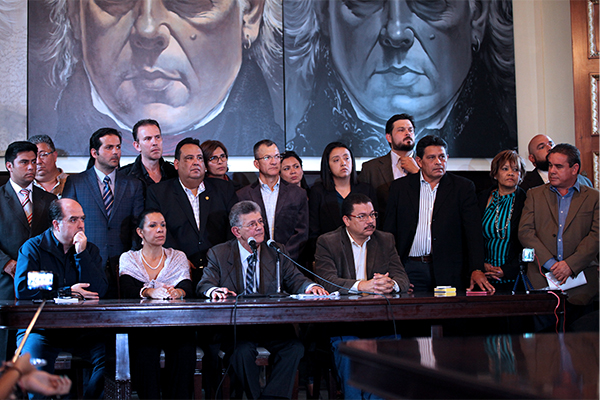 Advirtió, en compañía de un nutrido grupo de diputados del Bloque de la Unidad Democrática, que el Parlamento no va a dejar de investigar ni de legislar, en definitiva aseguró que la sentencia no tiene un efecto inhibitorio sobre la Asamblea Nacional.