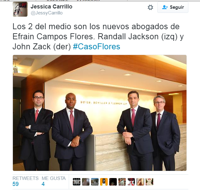 El pasado 8 de marzo fue introducida dos comunicaciones en la Corte del Distrito Sur de Nueva York (SDNY, por sus siglas en inglés). Donde se notifica que Randall W. Jackson y John T. Zack se unirán a la defensa de Efraín Campos Flores.