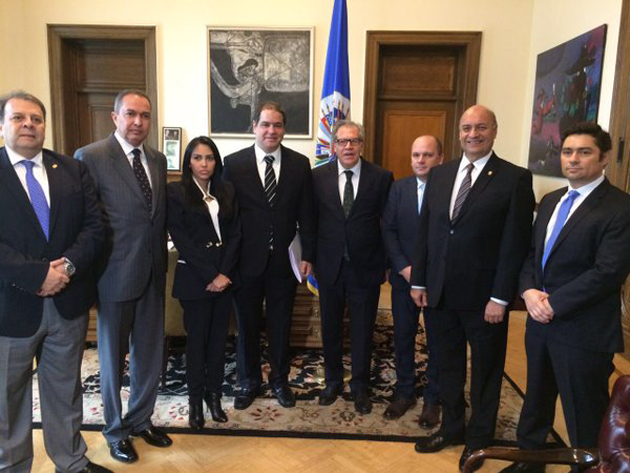 Una delegación de la oposición venezolana le entregó hoy documentación sobre la «crisis política, social e institucional» que vive hoy una Venezuela «sin división de poderes, con 115 presos políticos y en escasez de alimentos y medicinas».