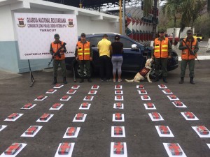 Por este hecho fueron detenidos un hombre y una mujer de nacionalidad venezolana, de 36 y 26 años respectivamente, quienes trasladaban el alijo desde Santa Bárbara del Zulia con destino a Punto Fijo, estado Falcón. De este procedimiento se notificó Fiscal 10 del Ministerio Público de la Circunscripción Judicial del estado Yaracuy para las actuaciones correspondientes.