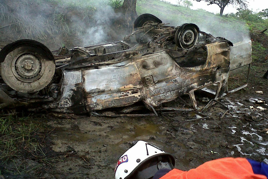 Se cree que el vehículo se habría volcado a causa del húmedo asfalto producto de lluvias. La camioneta al parecer cayó por un barranco y se prendió en fuego.El Nacional