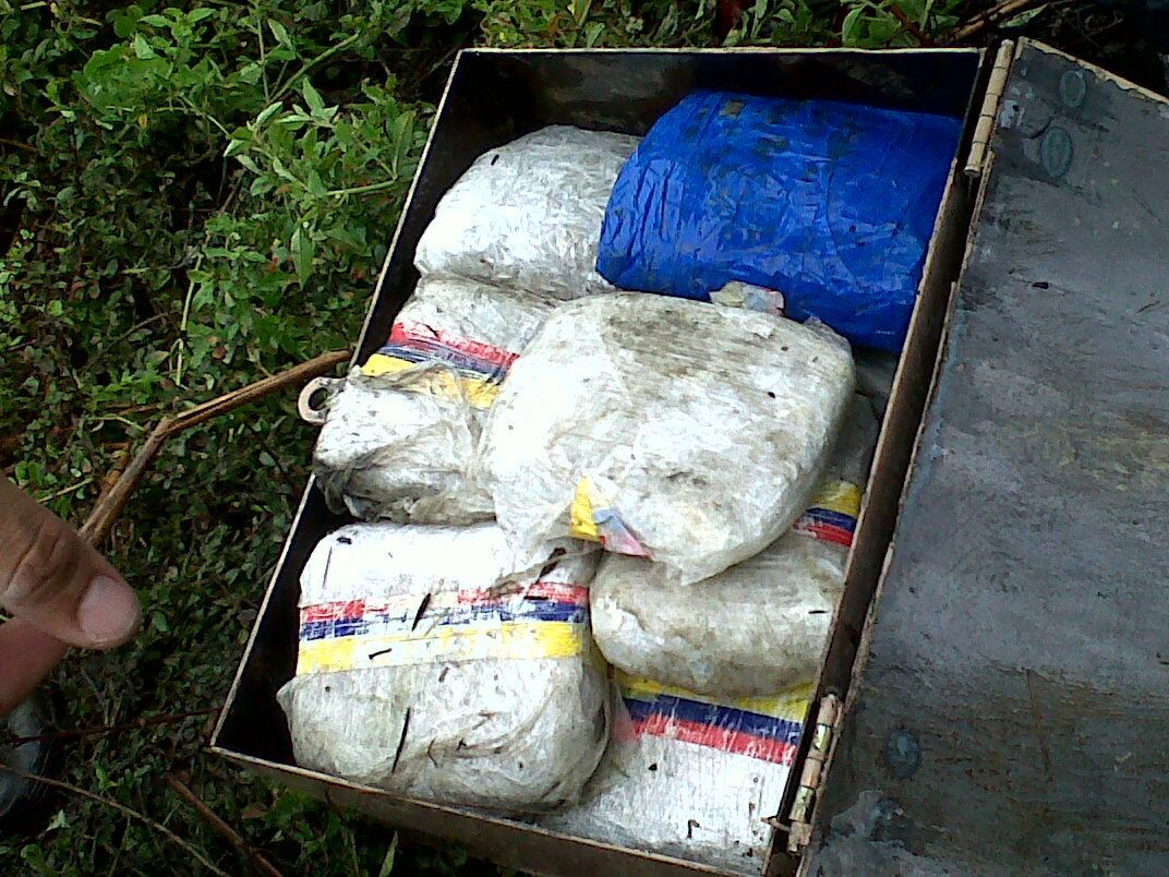 Las autoridades que llegaron al lugar incautaron alrededor de 40 panelas de marihuana, además de las armas reglamentarias de los funcionarios.
