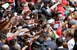 | La suspendida presidenta de Brasil Dilma Rousseff saluda a sus partidarios a las afueras del palacio Planalto en Brasilia, Mayo 12, Foto Reuters /Adriano Machado