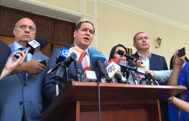 “Estamos actuando bajo la Constitución de la República Bolivariana de Venezuela que nos ampara en el ejercicio de nuestros derechos como parlamentarios para proteger al pueblo de Venezuela y defender la democracia. La comunidad internacional está reaccionando y eso le duele al gobierno de Maduro, somos defensores de la patria, los traidores están en Miraflores que pretenden engañar al mundo sobre la escasez de alimentos, medicinas, la situación de los presos políticos y las violaciones a los derechos humanos que hoy padecen los venezolanos”, declaró.