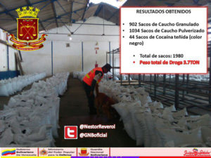 El Comandante General de la Guardia Nacional Bolivariana (GNB), Nestor Reverol, informó este miércoles que fueron incautadas 3,7 toneladas de drogas en un procedimiento iniciado el 14 de mayo en el estado Táchira, que incluyó allanamientos en los estados Carabobo y Vargas, además del desmantelamiento de una organización delictiva vinculada al cartel mexicano de “Los Zetas”.