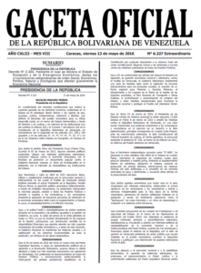 CCD | En la Gaceta Oficial Nro. N° 6.227 Extraordinario, con fecha viernes 13 de mayo de 2016, fue publicado el Decreto número 2.323 que declara el Estado de Excepción y Emergencia Económica. Tiene una vigencia de 60 días, prorrogable por 60 días más. De acuerdo a su contenido, que abarca doce artículos, la Sala Constitucional del Tribunal Supremo de Justicia y la Asamblea Nacional tienen ocho días días para que se pronuncien. En el caso del órgano rector del Poder Judicial, sobre su constitucionalidad, y el Parlamento Nacional su consideración y aprobación .