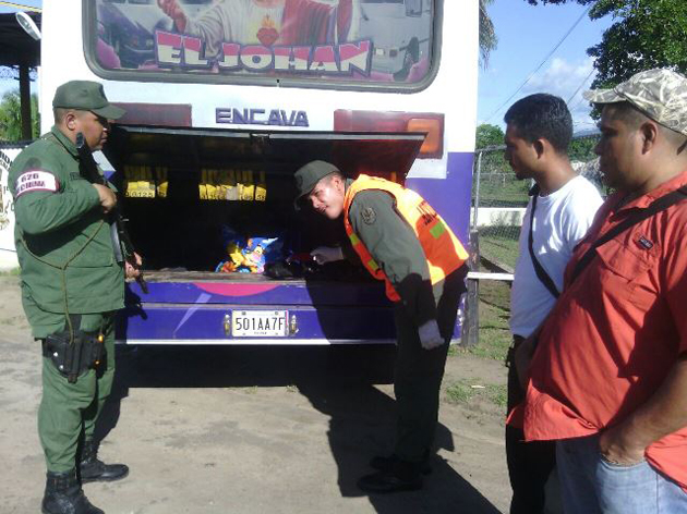 EL procedimiento se materializó a los 9 días del mes de junio, cuando los efectivos efectuaron la inspección a un vehículo de transporte público de color blanco y multicolor de transporte público Caicara-Amazonas, en el Punto de Control Fijo Santa Rosalía del Estado Bolívar.