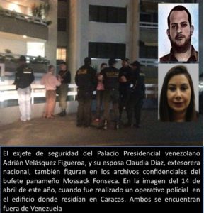 CCD | El Ministerio Público acusó al hermano de Adrián Velásquez Figueroa, exjefe de seguridad en el Palacio de Miraflores del fallecido presidente Hugo Chavez. Calificado como empresario, Josmel Velásquez Figueroa fue acusado por su presunta vinculación con el caso de Papeles de Panamá, concretamente por los delitos de legitimación de capitales y asociación para delinquir.