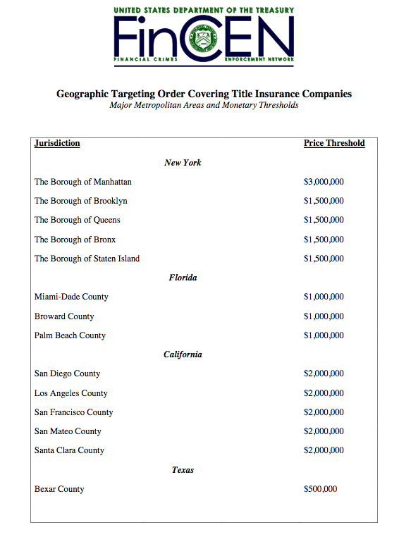 «La información que hemos obtenido de nuestros GTO iniciales sugiere que estamos en el camino correcto,» dijo el Director Interino de la FinCEN Jamal El-Hindi. «Con la ampliación de los OTG a otras ciudades importantes, vamos a aprender más acerca de los riesgos de lavado de dinero en los mercados nacionales de bienes raíces, lo que ayuda a determinar nuestro curso regulatorio futuro».
