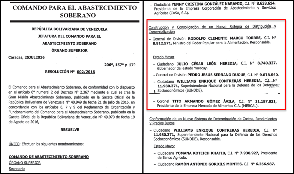 El pasado el 30 de agosto acuerdo en la Gaceta Oficial 40.977 publicado , Serrano Mancilla figuraba entre los integrantes del Comando como miembro del «Estado Mayor» para la «Construcción y Consolidación de un Nuevo Sistema de Distribución y Comercialización».