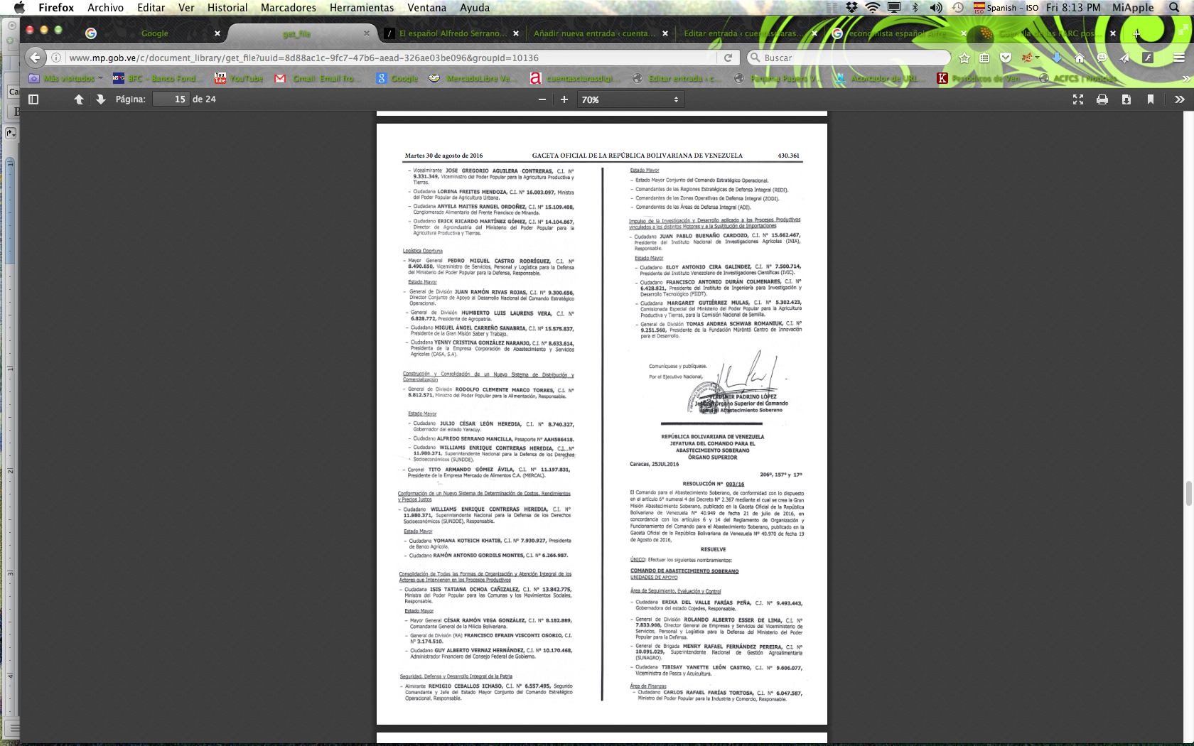 Tres resoluciones dan cuenta de una larga lista de designaciones entre militares, ministros y otros funcionarios de gobierno. Pero la que llama la atención es el nombramiento del economista español Alfredo Serrano Mancilla, director del Centro Estratégico Latinoamericano de Geopolítica (Celag), asesor de la administración de Nicolás Maduro y a quien se le atribuye haber bloqueado las reformas que el ahora ex vicepresidente del Área Económica, Miguel Pérez Abad, intentaba poner en marcha para recuperar parte del terreno perdido en materia económica.Foto: Wilmer Errades. AVN.