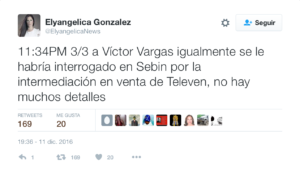 La causa inicial del interrogatorio conducido por el propio director del Sebin, habría sido el caso Credicard, consorcio del cual Vargas es director, sin embargo, la corresponsal señala que también se habrían tocado otros temas como la «intermediación del banquero en la venta de Televen».