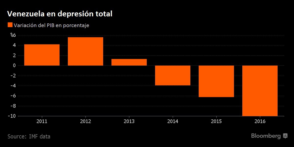 Cualesquiera que sean las dificultades para medir el declive de Venezuela, pocos economistas piensan que ha terminado. La economía se encaminará a reducir otro 2,4 por ciento en 2017, de acuerdo con el pronóstico promedio en una encuesta de Bloomberg, el FMI dice un 4,5 por ciento.