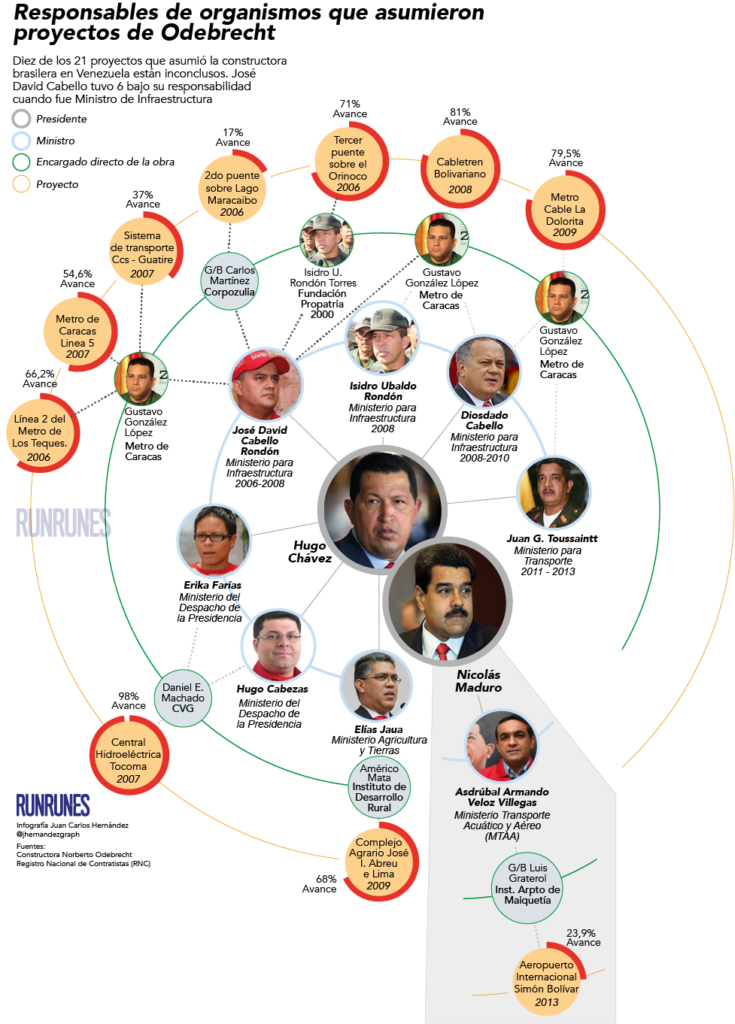 CCD | La investigación realizada por Lisseth Boon para RunRunes pone el foco en los nombres de los responsables de las obras de Odebrecht en Venezuela, el segundo país con más sobornos de la contratista brasileña. La sombra de la duda recae sobre todos ellos ante el silencio de las autoridades que deben investigar el caso. Los inocentes, de haber alguno, cargarán con la culpa de los que recibieron las coimas?