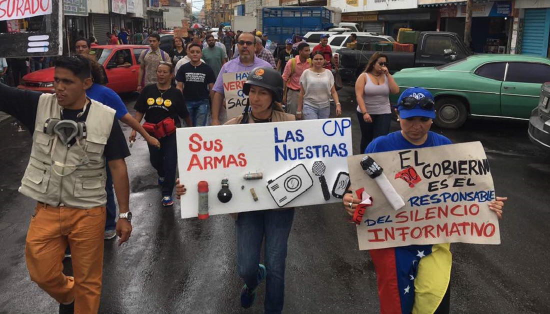 En la avenida Bolívar, a la altura del bulevar Pérez Almarza, comenzó la concentración. En ese lugar se apostaron los comunicadores sociales con sus carteles y consignas. Durante la jornada, los periodistas estuvieron vigilados muy de cerca por la policía motorizada de Aragua.