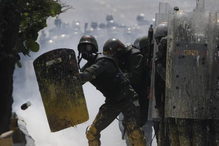 A veces, a la guardia diurna para enfrentar las manifestaciones siguen turnos nocturnos de emergencia para contener brotes de saqueo. Guardias nacionales y policías han sido vistos durmiendo en las calles de Caracas por las mañanas antes de que las protestas ganen ritmo.