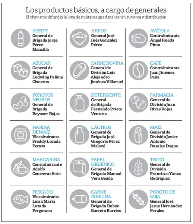 En ese momento, Contreras aseguró que a dichos generales se le entregarían los análisis del Sundde de cada rubro con la misión de supervisar todo lo relacionado con cada uno de estos “desde el punto de vista productivo, distributivo y las condiciones de disponibilidad de acceso y las distorsiones observadas, además de las intenciones políticas vinculadas a algunas empresas para atentar contra la estabilidad y paz del país”.
