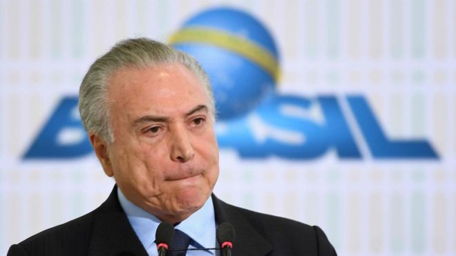 Tres días antes de dejar su cargo, el fiscal general Rodrigo Janot acusó al mandatario y varios ministros y exministros de su gobierno de formar un grupo que cometió «acciones ilícitas» en varias entidades públicas del país «a cambio de sobornos».