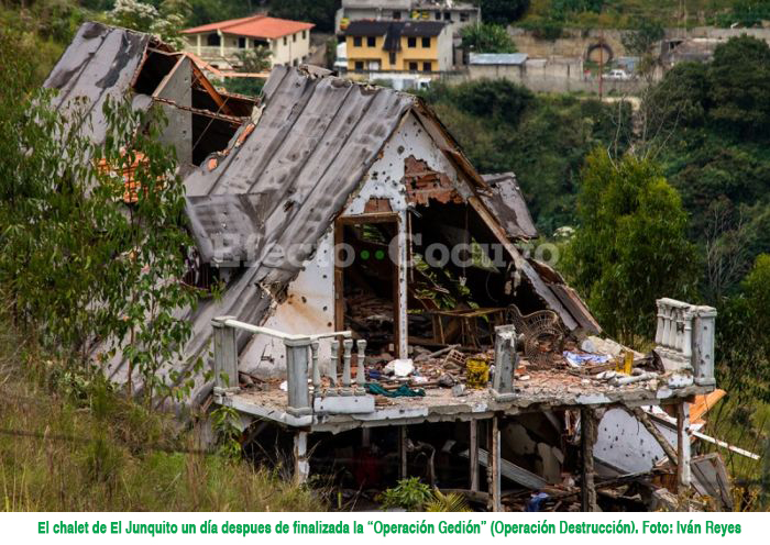 Una fuente extraoficial, que tuvo acceso a información del operativo, así como vecinos de El Junquito, indicaron a Efecto Cocuyo que los funcionarios dispararon el lanzacohetes contra el chalet alrededor de 8 veces. Este proyectil causó la mayor parte del daño a la estructura de la vivienda.