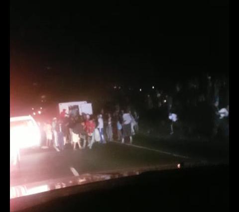 CCD La noche de este domingo grupo de personas están apostadas en el kilómetro 83 de la Autopista Regional del Centro, cerca del peaje de La Victoria, estado Aragua, impidiendo el tránsito con troncos para saquear los camiones con comida que pasen por la vía.