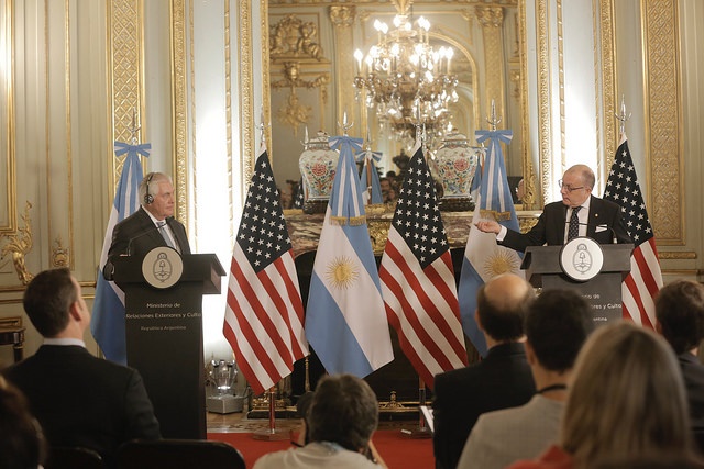 En una conferencia de prensa en Buenos Aires, el secretario de Estado norteamericano, Rex Tillerson, reveló que la conversación con el canciller argentino Jorge Faurié se centró en reforzar el trabajo conjunto frente al narcotráfico, el lavado de dinero, la trata de personas y la financiación de los grupos terroristas.