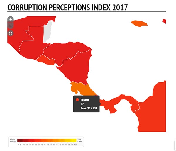 Panamá se enmarca en esta tendencia global con una puntuación de 37 en el índice y se coloca en un rango de 96 sobre 180.
