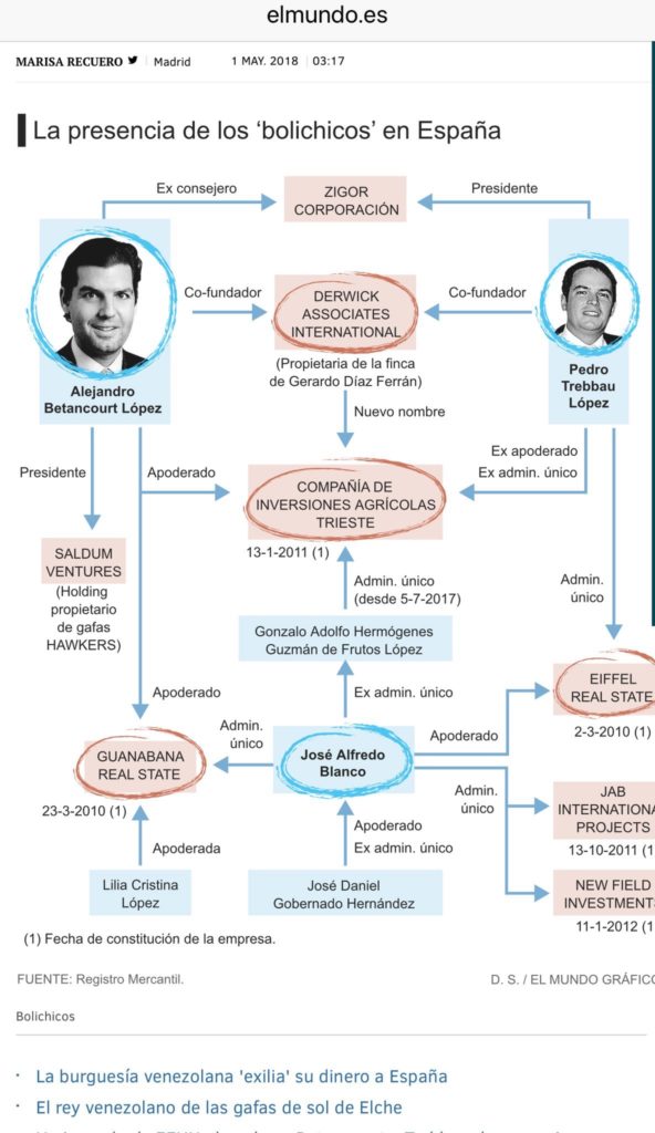 El Sepblac remitió a la Policía una treintena de operaciones sospechosas, entre las que se encuentra la creación de empresas, por parte de terceros, que después fueron vendidas a Betancourt y a Trebbau y estos, a su vez, a otras sociedades radicadas en paraísos fiscales, según consta en la información que obra en poder de la Policía. Las empresas se usan para hacer inversiones inmobiliarias, siendo el ciudadano venezolano José Alfredo Blanco la persona que las constituye.