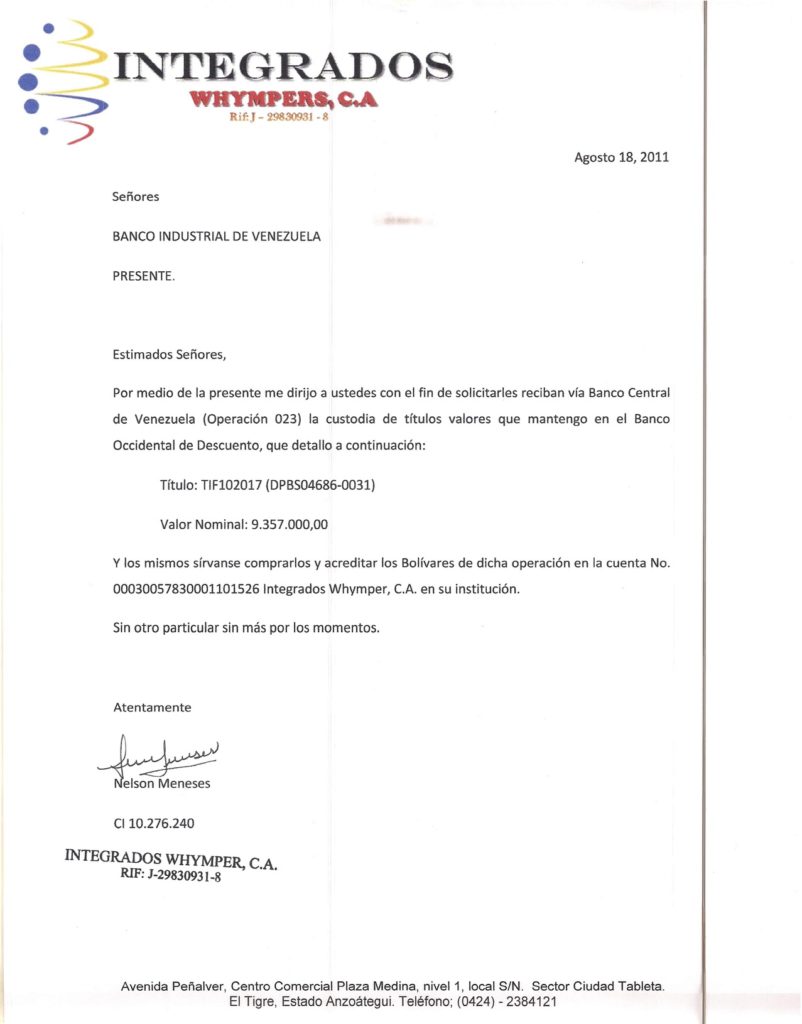 El contra valor en bolívares, calculado con base en el precio del dólar fijado por el Banco Central de Venezuela (BCV) en el SITME más una prima, era pagado en cuentas de compañías en Banplus Banco Comercial S.A. y en el Banco Industrial de Venezuela.