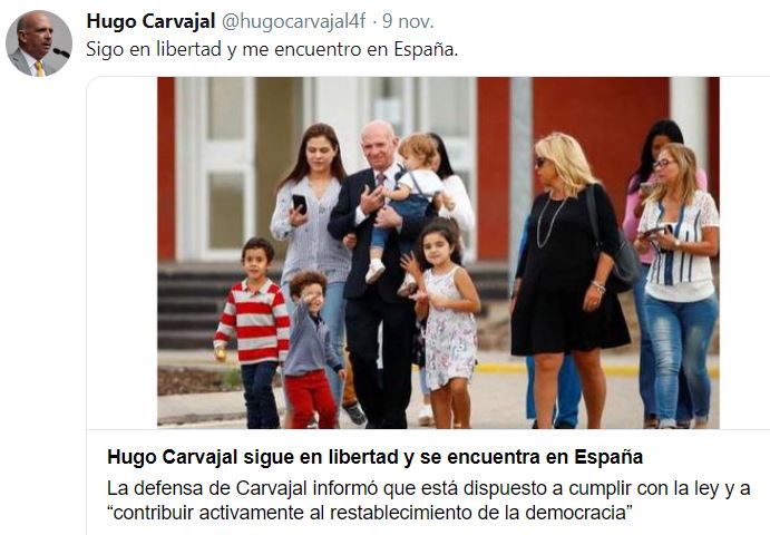 HUGO CARVAJAL SIGUE EN LIBERTAD Y SE ENCUENTRA EN ESPAÑA