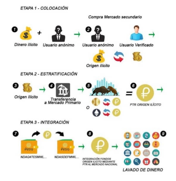 El uso de una criptodivisa emitida por un dictador, permitiría realizar proceso de lavado de dinero y otras actividades ilícitas de forma anónima.