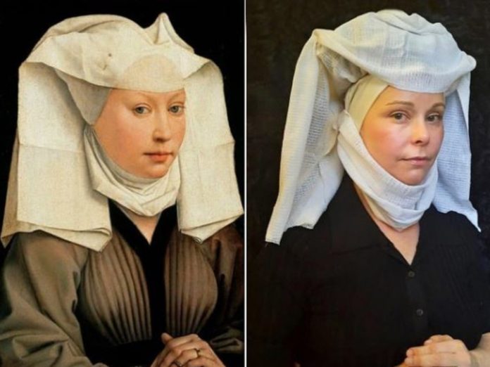 «Quisiéramos romper estereotipos», afirma Katerina Brúdnaya-Chelyadinova, moderadora de la comunidad virtual Izoizolyacia (Imagen-Aislamiento), que recrea obras maestras, a veces con realismo, otras con humor, para tratar de superar con arte el confinamiento decretado para frenar el coronavirus.
