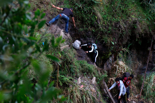 Cubierto con una mascarilla y quemado por el inclemente sol andino, Dealdri José lleva más de 30 días caminando desde Perú y se dispone a cruzar con su mujer embarazada y dos hijos menores un pronunciado desfiladero sobre el río Carchi, frontera natural entre Ecuador y Colombia. Con información de EFE.