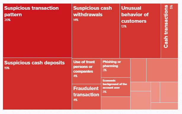 Las instituciones de crédito y los bancos son la fuente principal de informes de actividad sospechosa para todas las unidades de inteligencia financiera en la UE, seguidos por los remitentes de dinero. Las diferencias nacionales son evidentes, según Europol, con algunos sectores nombrados como los mejores reporteros por las autoridades en algunos países, y al final de la lista en otros.