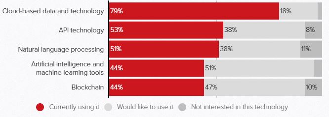 Porcentaje de gerentes encuestados que dicen que sus compañías usan tecnología para prevenir delitos financieros. Las empresas que utilizan nuevas tecnologías tienen más éxito en la realización de controles.